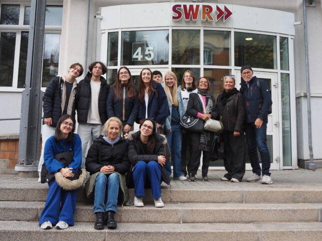 Am Nachmittag durfte der Jugendgemeinderat bei einer Besichtigungstour im Funkhaus des SWR eintauchen in dessen praktische Arbeit mit vielen konkreten Beispielen aus Radio, Fernsehen und Social Media sowie grenzüberschreitender Berichterstattung. Am Ende konnten die sehr beeindruckten Besucher*innen noch live den 17-Uhr-Nachrichten zuhören und mit der Sprecherin reden. Abends wurde im Schützenhaus Au der Tag mit einem gemütlichen Beisammensein bei typisch badischem Essen abgeschlossen.